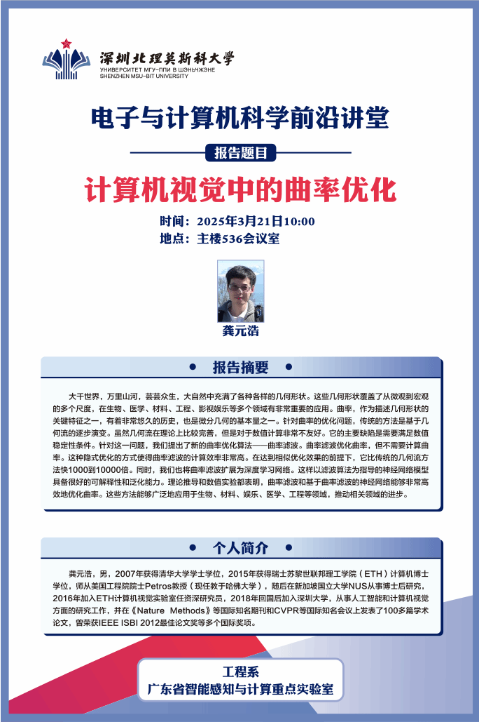 報(bào)告摘要:大千世界,萬(wàn)里山河,蕓蕓眾生,大自然中充滿了各種各樣的幾何形狀。這些幾何形狀覆蓋了從微觀到宏觀的多個(gè)尺度,在生物、醫(yī)學(xué)、材料、工程、影視娛樂(lè)等多個(gè)領(lǐng)域有非常重要的應(yīng)用。曲率,作為描述幾何形狀的關(guān)鍵特征之一,有著非常悠久的歷史,也是微分幾何的基本量之一。針對(duì)曲率的優(yōu)化問(wèn)題,傳統(tǒng)的方法是基于幾何流的逐步演變。雖然幾何流在理論上比較完善,但是對(duì)于數(shù)值計(jì)算非常不友好。它的主要缺陷是需要滿足數(shù)值穩(wěn)定性條件。針對(duì)這一問(wèn)題,我們提出了新的曲率優(yōu)化算法——曲率濾波。曲率濾波優(yōu)化曲率,但不需要計(jì)算曲率。這種隱式優(yōu)化的方式使得曲率濾波的計(jì)算效率非常高。在達(dá)到相似優(yōu)化效果的前提下,它比傳統(tǒng)的幾何流方法快1000到10000倍。同時(shí),我們也將曲率濾波擴(kuò)展為深度學(xué)習(xí)網(wǎng)絡(luò)。這樣以濾波算法為指導(dǎo)的神經(jīng)網(wǎng)絡(luò)模型具備很好的可解釋性和泛化能力。理論推導(dǎo)和數(shù)值實(shí)驗(yàn)都表明,曲率濾波和基于曲率濾波的神經(jīng)網(wǎng)絡(luò)能夠非常高效地優(yōu)化曲率。這些方法能夠廣泛地應(yīng)用于生物、材料、娛樂(lè)、醫(yī)學(xué)、工程等領(lǐng)域,推動(dòng)相關(guān)領(lǐng)域的進(jìn)步。
