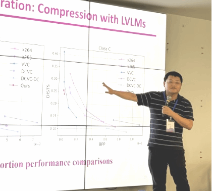 王詩淇博士的特邀報告題目是“Video Coding and Quality Assessment Based on Generative Models”,分享了如何實(shí)現(xiàn)更高效的視頻基于大語言強(qiáng)大生成能力的編碼與質(zhì)量評估視覺模型,并介紹了他們在低復(fù)雜度生成人臉方面的標(biāo)準(zhǔn)化工作視頻編碼,進(jìn)一步討論壓縮人類、自然和人工智能生成的可能性視頻內(nèi)容。