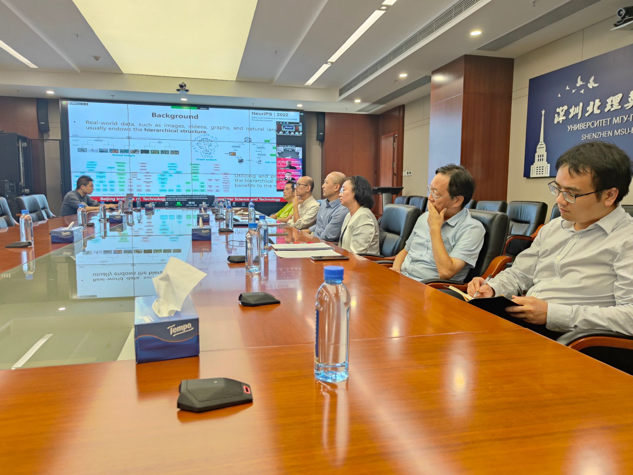2022年10月28日,深北莫-斯科爾理工機器感知與計算智能研討會在線上線下同時舉行。此研討會是由中國深圳北理莫斯科大學(Shenzhen MSU-BIT University, SMBU)和俄羅斯斯科爾科沃理工學院(Skolkovo Institute of Science and Technology, Skoltech)共同舉辦的雙邊學術論壇,賈云得教授和Ivan Oseledets教授共同擔任研討會主席,裴明濤教授、Aleksandr Mikhalev 博士、吳心筱教授、Dmitry Dylov 教授擔任分組報告主席。本次研討會的主題是機器感知與智能計算,共邀請了12位來自俄羅斯和中國的學者做學術報告。他們的精彩報告給參會人員帶來了一場高端的學術盛宴。本次研討會共有線上和線下100多位學者參加,同時也進行視頻直播。