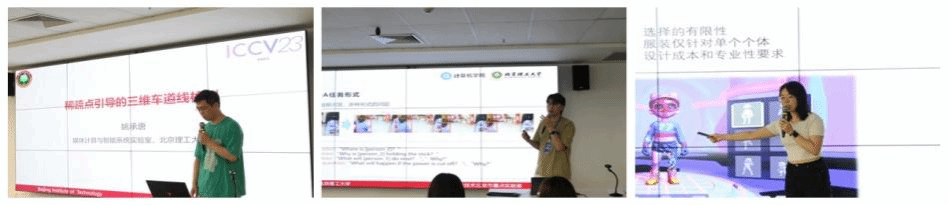 在上午的論壇中,姚承唐同學在報告中介紹了一種稀疏點引導的三維車道線檢測方法;臧傳祺同學在報告中介紹了一種多模態問答數據中的因果關聯捕捉方法;李安琪同學在報告中介紹了一種基于數字服裝的版片表達、重建及重定向方法,實現了數字服裝的個性化定制。翟明亮同學在報告中介紹了Fast-StrucTexT,這是一個基于沙漏Transformer架構的高效多模態框架,可用于文檔理解,該方法實現在性能不下降的情況下顯著提升了推理速度。楊碩同學在報告中介紹了一種通過引入了概率分布函數來建模動作前景幀和邊界幀的概率,生成合理的偽標簽,幫助模型學習,極大的降低人工標注全部數據幀的難度。徐滿杰同學在報告中討論我們如何將主動推理的思想應用到開放世界的推理任務中。石辰睿同學在報告中介紹了一種基于代理任務難易程度的順序學習優化方法。