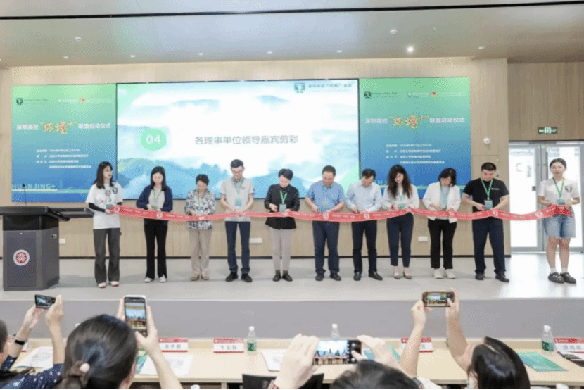 圖2 各理事單位領導為深圳高校“環境+”聯盟啟動剪彩