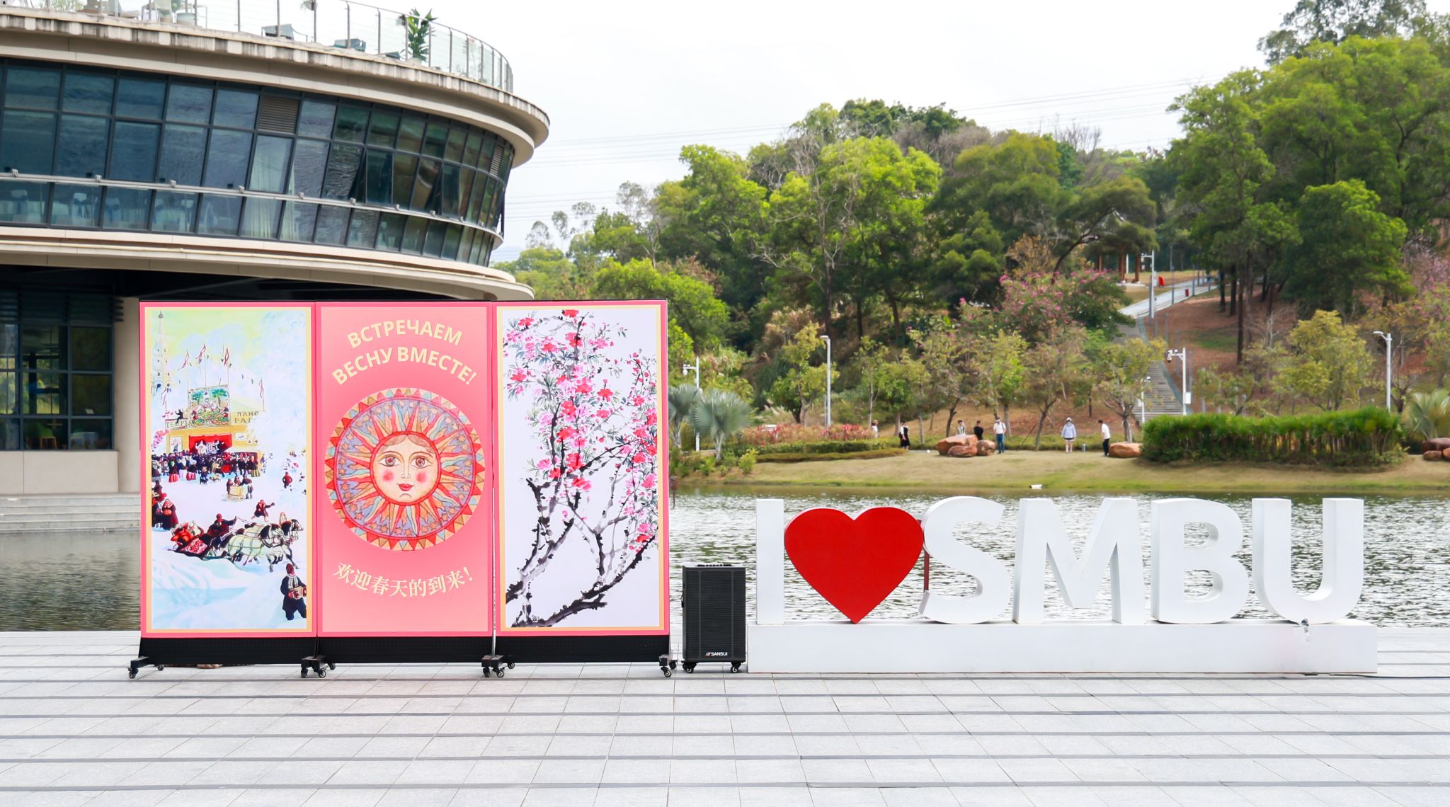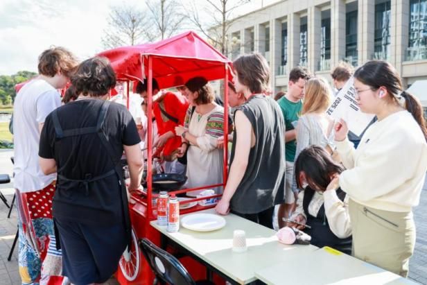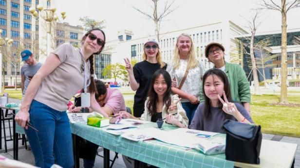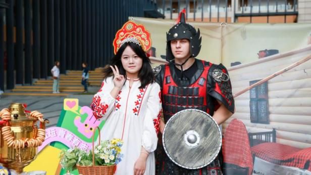 活動當天,湖畔廣場熱鬧非凡。焦黃的薄煎餅、俄式酸奶、蜂蜜、茗茶、春餅等中俄特色美食攤位人流攢動,營造出濃郁的節日氛圍。互動體驗區同樣吸引了眾多師生駐足停留,師生們不僅可以學習制作傳統的俄羅斯碎布娃娃、繪制俄羅斯套娃、體驗俄羅斯書法以及嘗試用勺子演奏,還能動手制作中國非遺手作漆扇、菱形風箏等,豐富多彩的活動充分展示了中俄文化交融碰撞的獨特魅力。此外,現場還設置了拍照打卡區,師生們與身著俄羅斯特色民族服飾的工作人員合影留念,留下難忘的瞬間。
