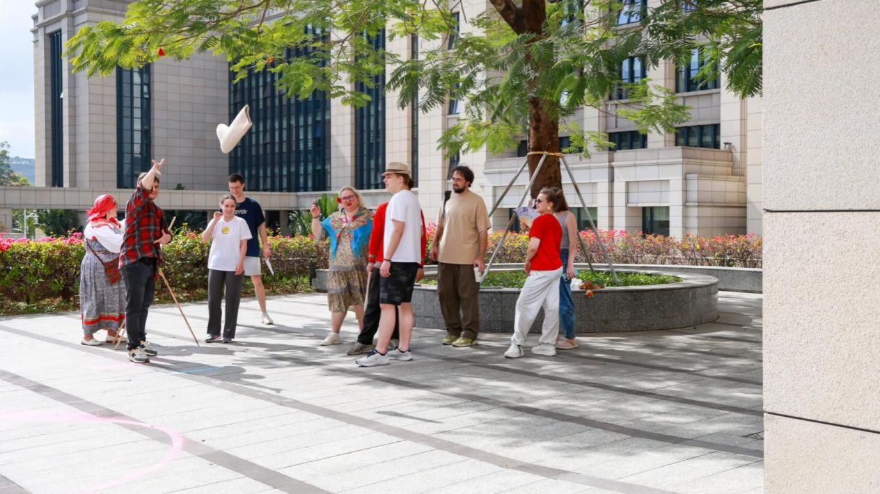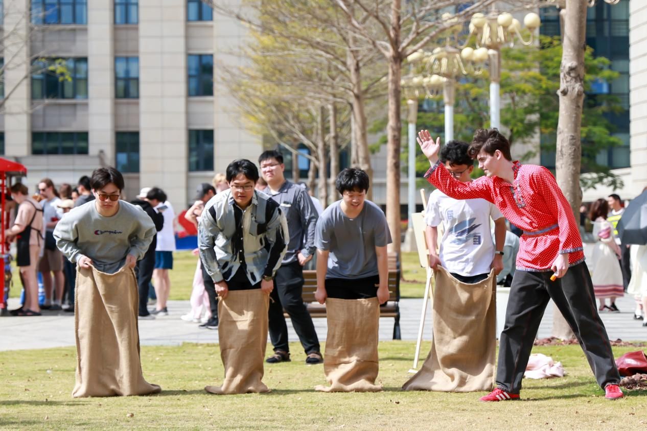此外,活動現場還組織了豐富多彩的俄羅斯民俗游戲,如俄羅斯氈靴游戲、拔河和袋鼠跳等。這些游戲不僅考驗了師生們的團隊協作能力,更讓大家在歡聲笑語中增進了彼此的友誼,進一步加深了對俄羅斯文化的理解和認同。