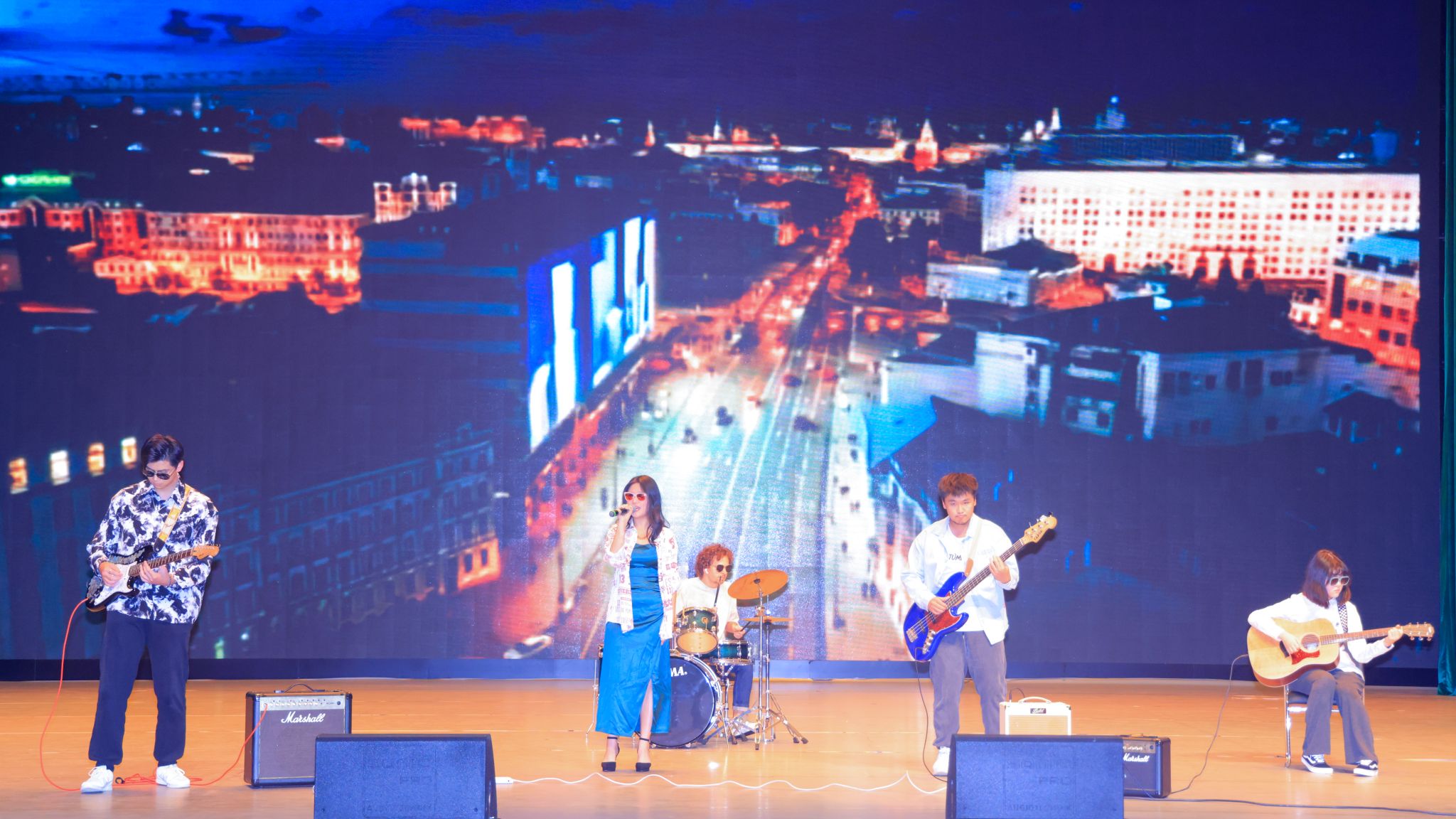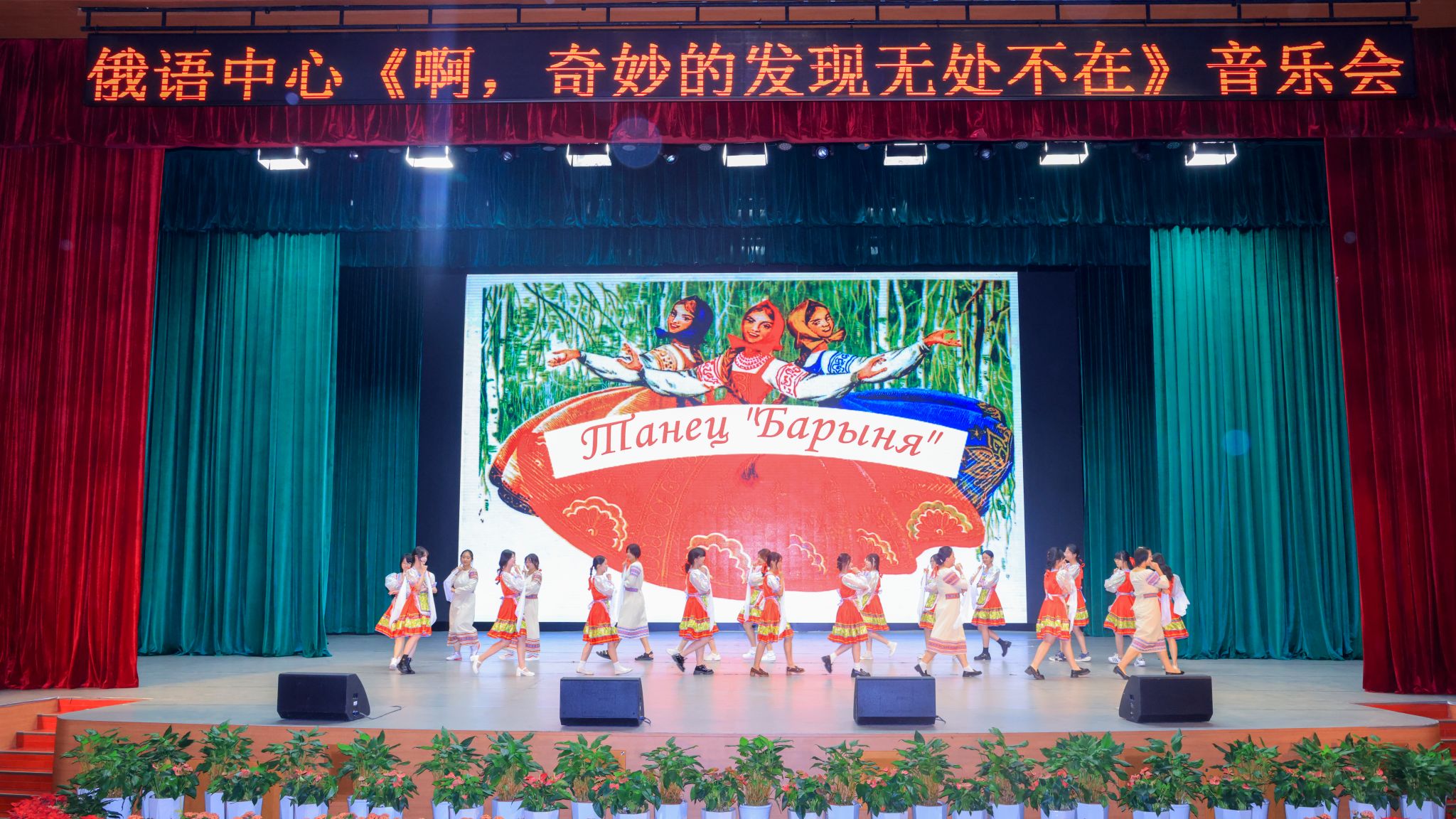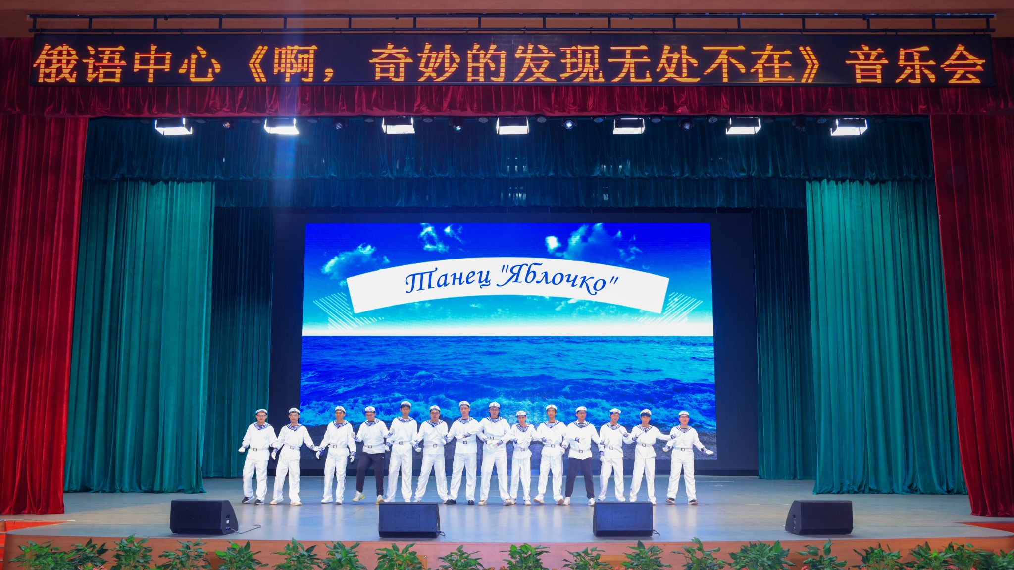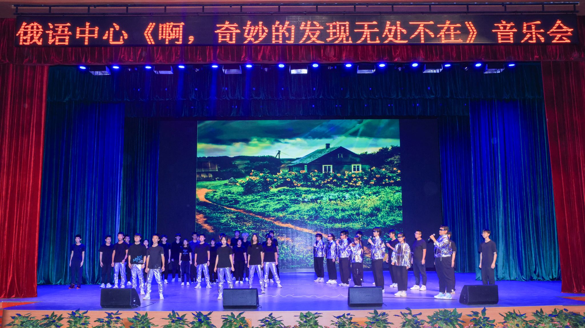 電影小組《注意:開機!》的同學們演唱了一首在中俄兩國都深受喜愛的歌曲《喀秋莎》,中俄雙語演唱的嘹亮歌聲響徹全場;國情文化小組《對話》把俄羅斯童話《斧子粥》改編成劇本搬上了舞臺,充分展現了同學們的表演和音樂才能。