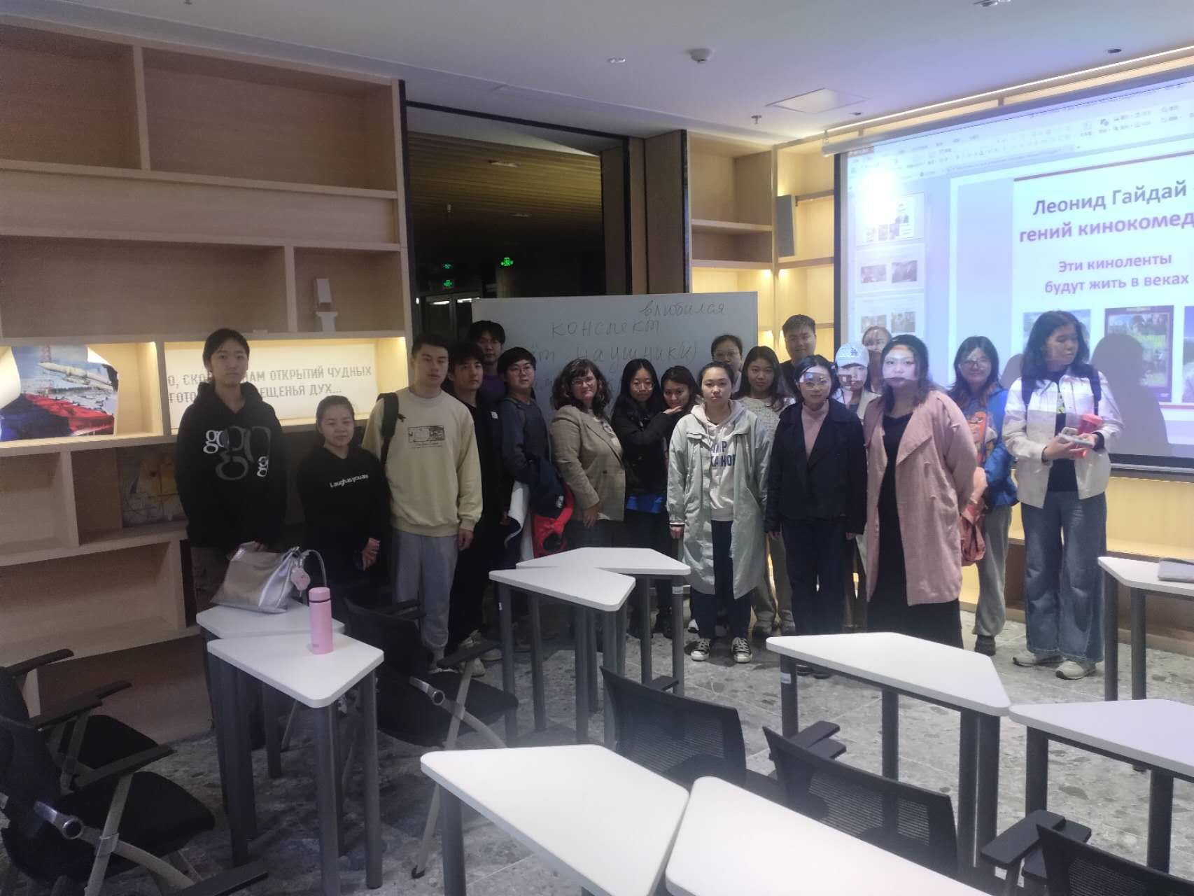 12 月 28 日,俄語中心舉辦了第三場俄語角活動--電影愛好者聚會,來自不同院系的約20名高年級學生參加了此次活動。在輕松友好的氛圍中,大家首先觀看了蘇聯著名導演、喜劇電影大師列昂尼德﹒蓋達伊(Leonid Gaidai)的電影《魔力》,隨后進行了討論。該片講述了一個學生快活而又艱苦的生活。深北莫學子們對比了以前大學生們的生活和現在他們遇到的問題:宿舍、圖書館、備考、同學間的友誼和互幫互助。事實證明,過去與現在之間,俄羅斯大學生的學習與中國大學生的學習之間共同之處遠遠超出了人們的想象。我們兩國的學生都富有創造力,足智多謀,求知欲強,勤奮好學。而考試前的緊張和對考試的認真態度是世界上任何一個角落的學生都熟悉的。恰巧,考期已經開始了!祝大家考試順利!下次俄語角再會!