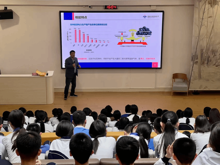 表彰大會結束后,張東翔教授在布心中學圖書館為學生們帶來了一場生動有趣的科普講座。講座中,張教授詳細介紹了化學與工程、數學之間的緊密聯系,并分享了他在核工業機器人項目上的研究進展。他用簡單易懂的描述解釋了核能利用的基本原理及其在電力能源發展中的重要作用。張教授還鼓勵學生們積極提問,表達對科學的興趣與好奇。他強調初中階段是學生吸收知識和渴望成長的關鍵時期,應該引導他們向積極方向發展。