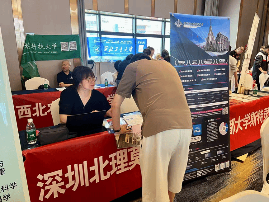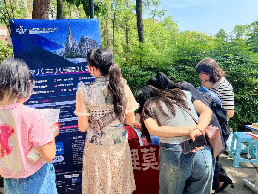 4 月 19 日下午,招生組前往求精中學(三溪路校區)開展擺展咨詢。在校園內,招生組通過擺放宣傳展板、發放招生資料等方式,讓更多學生和家長了解到深圳北理莫斯科大學的獨特之處。對于學生和家長們提出的關于學校教學模式、就業前景、留學機會等疑問,招生組都一一進行了耐心細致的解答。