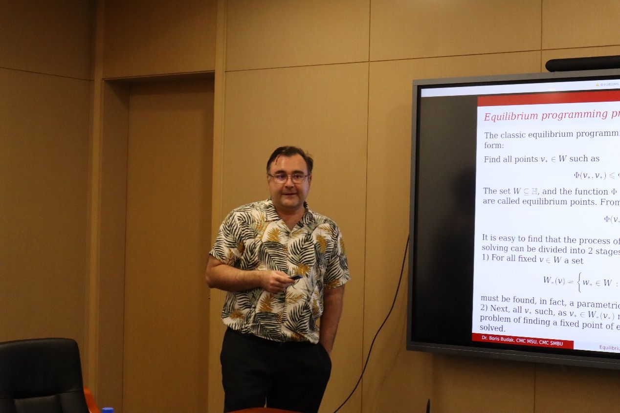 4月2日,深圳北理莫斯科大學計算數學與控制系成功舉辦2024“科學群中的數學”中俄國際會議分論壇。該會議時間恰逢莫斯科國立羅蒙諾索夫大學校長薩多維奇先生85周年紀念日。本次分論壇參會人員有計算數學系副主任BUDAK BORIS,教授:張曄,MELNIKOV BORIS,副教授:NJCHILIN PAVEL,MAYSURADZE ARCHIL,ILYUTKO VICTOR等17位老師,以及博士生。該會議旨在加強中俄兩國在數學領域的交流與合作,推動應用數學的發展與創新。為期一天的會議中,與會專家學者圍繞應用和計算數學領域的研究及其相關領域的發展進行深刻討論。