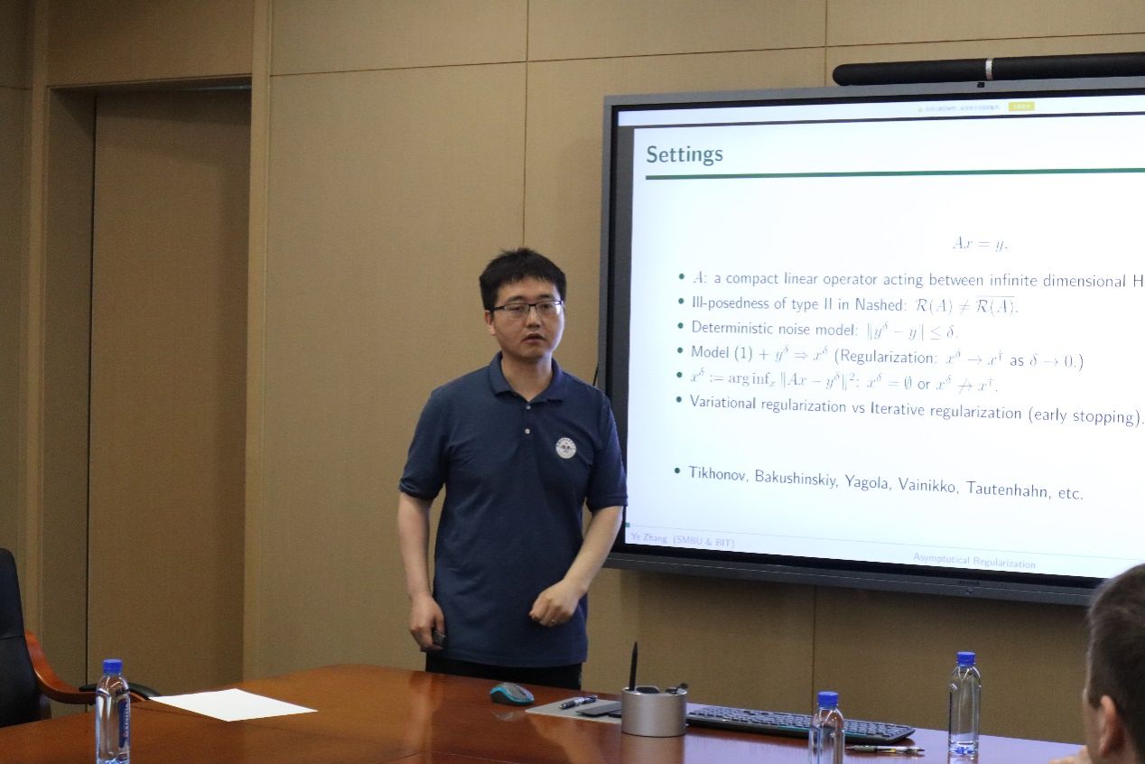 會議上,來自中俄兩國的11位老師分別就各自研究領域進行報告。分別講述了非線性交易方程的研究與應用、粒子非線性效應與聚焦模型研究、歐幾里得空間中非線性問題、反問題方法的探索與實踐、數學家在機器學習中應用與挑戰等生動有趣的課題。這些報告內容涵蓋了微分方程、最優化理論、數據分析、機器學習、數論等多個方面,充分展示了應用數學在現實生活和科學研究中的廣泛應用。老師們深入淺出地講解生動有趣的案例,讓與會者們受益匪淺。