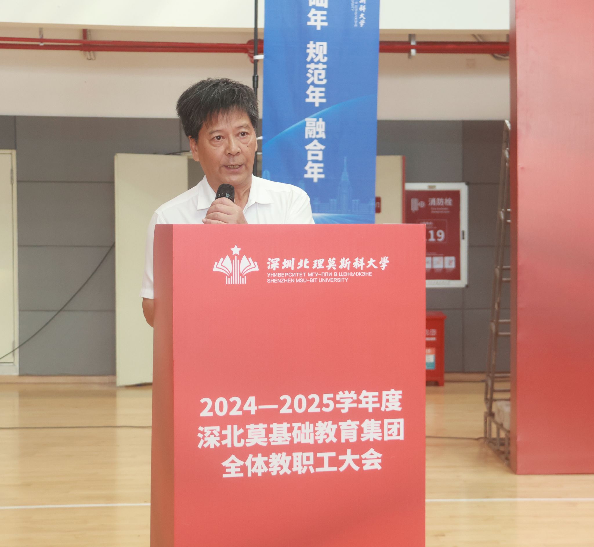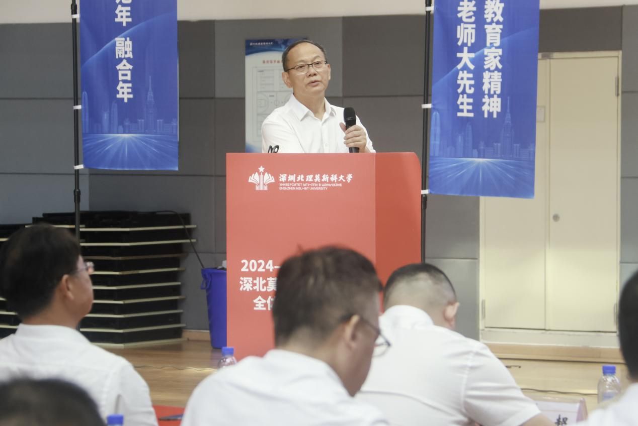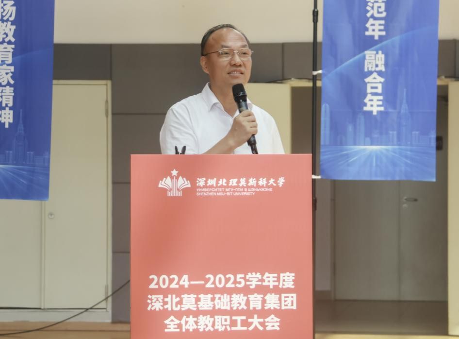 為深入學(xué)習(xí)領(lǐng)會(huì)習(xí)近平總書(shū)記關(guān)于教育工作的重要論述,貫徹落實(shí)黨的二十屆二中、三中全會(huì)精神,推動(dòng)深圳北理莫斯科大學(xué)基礎(chǔ)教育集團(tuán)(以下簡(jiǎn)稱“基礎(chǔ)教育集團(tuán)”)高質(zhì)量發(fā)展,建設(shè)師生幸福、受人尊敬的高品質(zhì)學(xué)校。2024年8月28日上午,深圳北理莫斯科大學(xué)基礎(chǔ)教育集團(tuán)全體教職工大會(huì)在大學(xué)體育館舉行。深圳北理莫斯科大學(xué)黨委書(shū)記朱迪儉,基礎(chǔ)教育集團(tuán)總校長(zhǎng)盧鴻鳴、常務(wù)副總校長(zhǎng)皮愛(ài)民、副總校長(zhǎng)朱全民和馮景華出席會(huì)議。基礎(chǔ)教育集團(tuán)全體人員,各附屬學(xué)校幼兒園的書(shū)記、校(園)長(zhǎng)和教職工共750人參加大會(huì),會(huì)議由皮愛(ài)民主持。