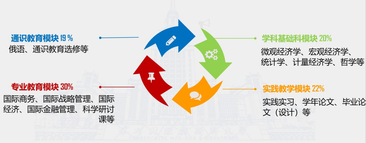 本專業成立于2021年,依托莫斯科大學經濟學的優勢基礎,授課語言為俄語,采用厚基礎、重實踐的人才培養模式,旨在為中俄戰略合作培養高層次多元化人才,不僅具備堅實寬廣的經濟系理論基礎和系統深入的專業知識,熟練掌握現代經濟分析方法和工具,而且能夠思辨地理解、分析、解決實際問題的復合創新型經濟管理領導人才。在培養環節,建立了包含商務演練、方案設計、案例分析、實訓實習、學年論文和畢業論文等環節的實踐教學體系,提升學生的分析和創新能力,并通過海外交流與海外學期,鍛煉學生的生存、學習能力,促進學生德智體美勞的全面發展。