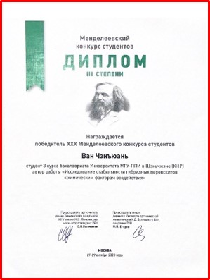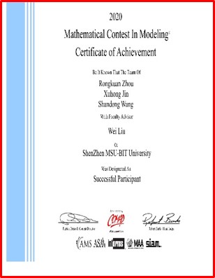 目前,本專業已有8名學生在科學研究、學科競賽、語言大賽等競賽中取得優異成績。包括2020年全國大學生數學建模競賽廣東省分賽一等獎、2020年美國大學生數學建模競賽(MCM/ICM)成功參賽獎、第30屆門捷列夫化學競賽二等獎和三等獎、2020“外研社·國才杯”全國英語演講大賽獎、第四屆來華留學生征文大賽特色獎。