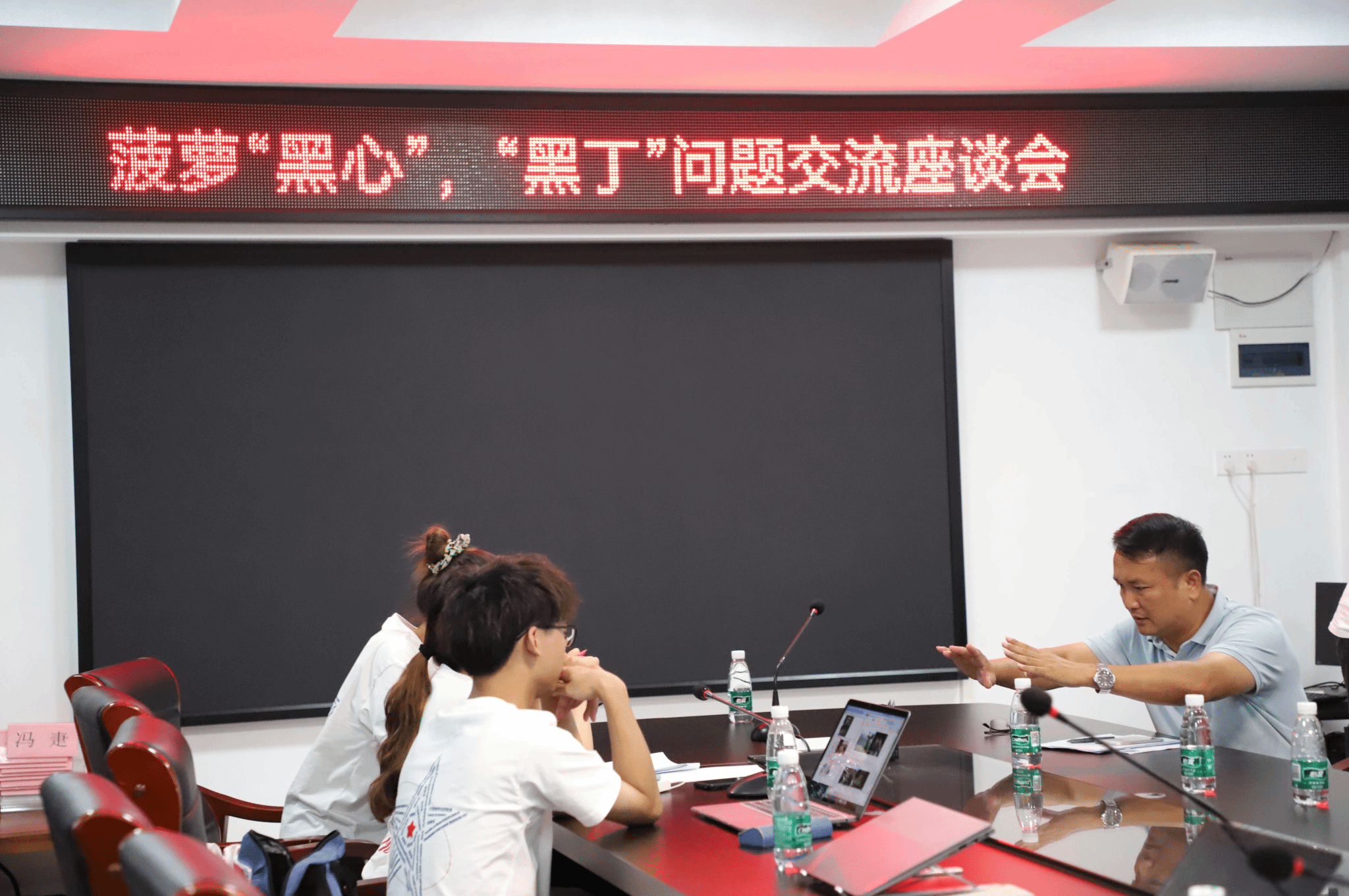 “沒有調查就沒有發言權”,為實地了解徐聞菠蘿產業情況,切實踐行鄉村振興,在徐聞縣農業農村局和曲界鎮團委的支持下,實踐團采用入戶調查、田野調查和走訪企業等形式,與普通村民、企業領導、縣相關職能部門等不同調查對象展開深入溝通。“菠蘿質量提升和品牌打造是現在徐聞菠蘿遇到的大問題,我們也一直在探尋有效的處理辦法。”在徐聞縣農業農村局與實踐團成員的座談會上,徐聞縣農業農村局副局長陳薇向同學們介紹了菠蘿難題。