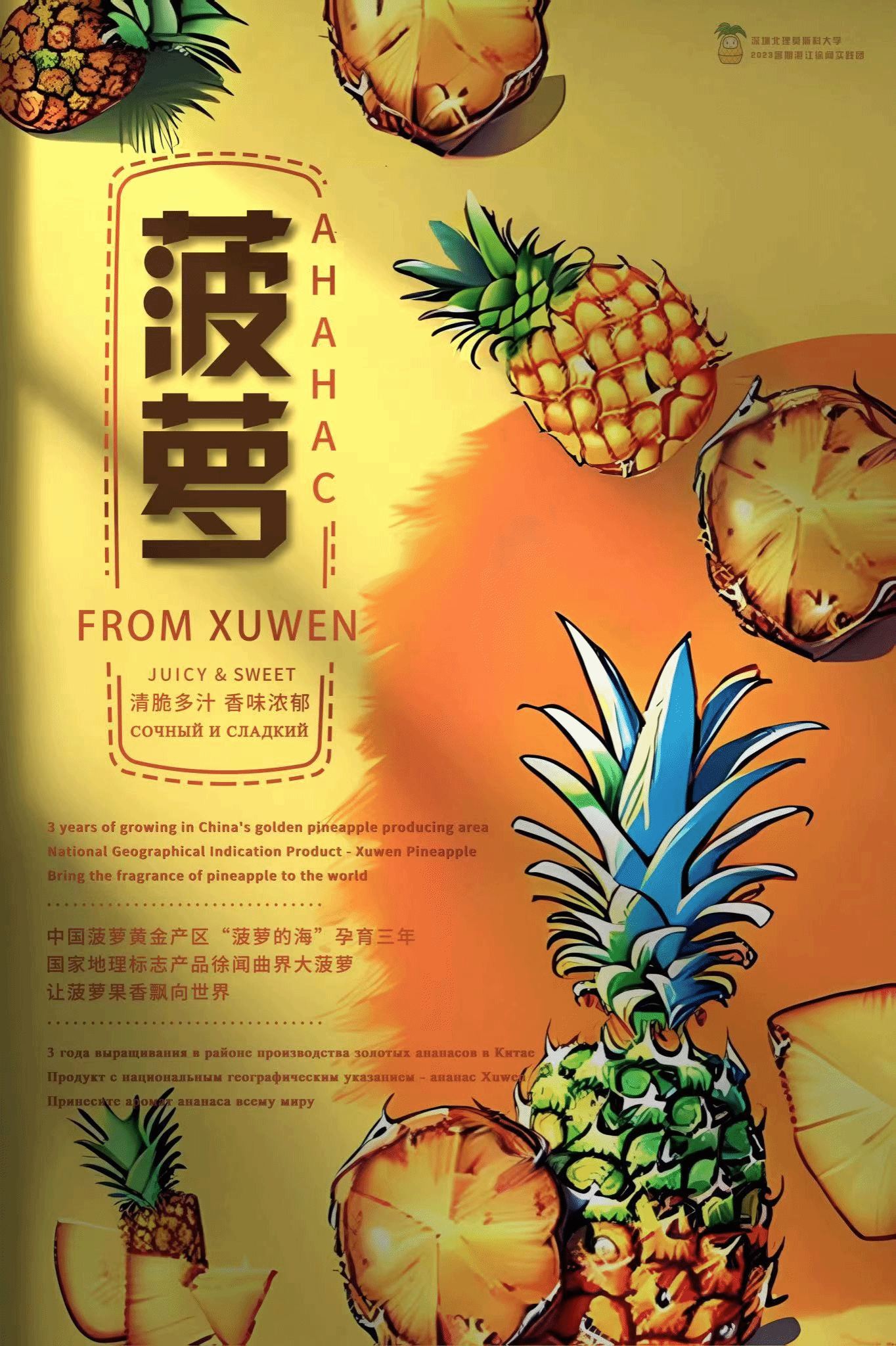 制作中英俄三語海報,在國際平臺宣傳徐聞菠蘿