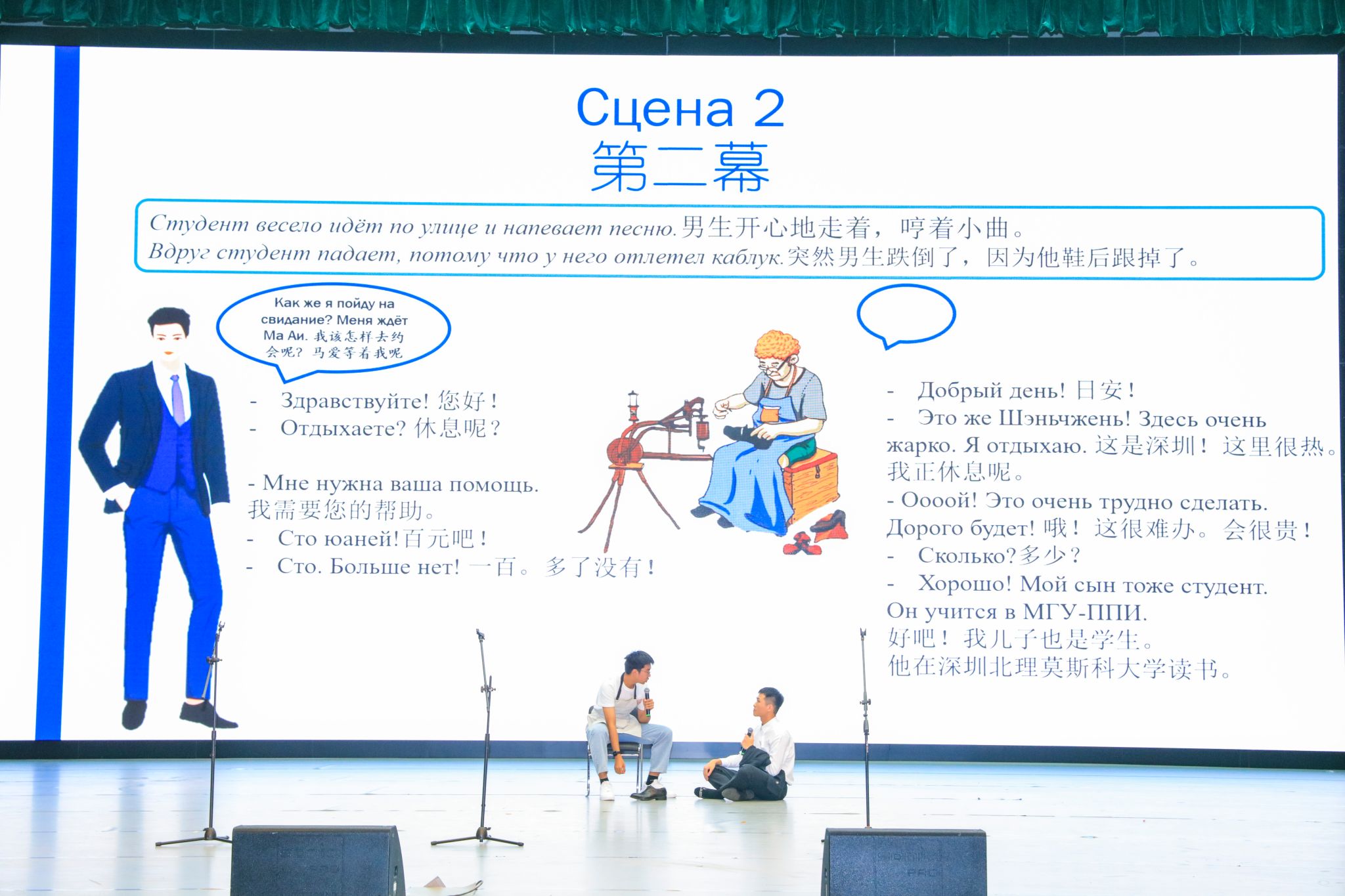 本次晚會主要圍繞著俄羅斯文化以及學生們課堂所學內容編排,所有節目均由入學學習俄語僅一個月的2023級本科新生在俄羅斯教師的指導下完成。此次俄語匯演充分展示了2023級深北莫學子“俄語強化月”的豐碩學習成果,同時也體現出深北莫俄語教學“寓教于樂、融學于趣、化教于心”的教學理念和“零起點、高標準、高質量”的俄語教學水平。