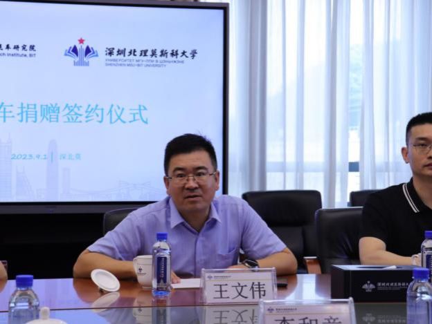 9月1日上午,深圳北理莫斯科大學(xué)同北京理工大學(xué)深圳汽車研究院舉行交流活動(dòng)暨捐贈(zèng)儀式。北京理工大學(xué)深圳汽車研究院執(zhí)行院長(zhǎng)王文偉、副院長(zhǎng)孫超、部長(zhǎng)王萍、部長(zhǎng)王博作為研究院代表出席,深圳北理莫斯科大學(xué)校長(zhǎng)李和章,條件保障部部長(zhǎng)彭巨光,工程系副主任程杞元,條件保障部副部長(zhǎng)王昭,科研事務(wù)部高級(jí)主管劉岳磊作為學(xué)校代表出席并接受捐贈(zèng)。工程系賈云德、陸耀、王偉,材料科學(xué)系谷思辰、于洋等多名教師參加交流活動(dòng)。