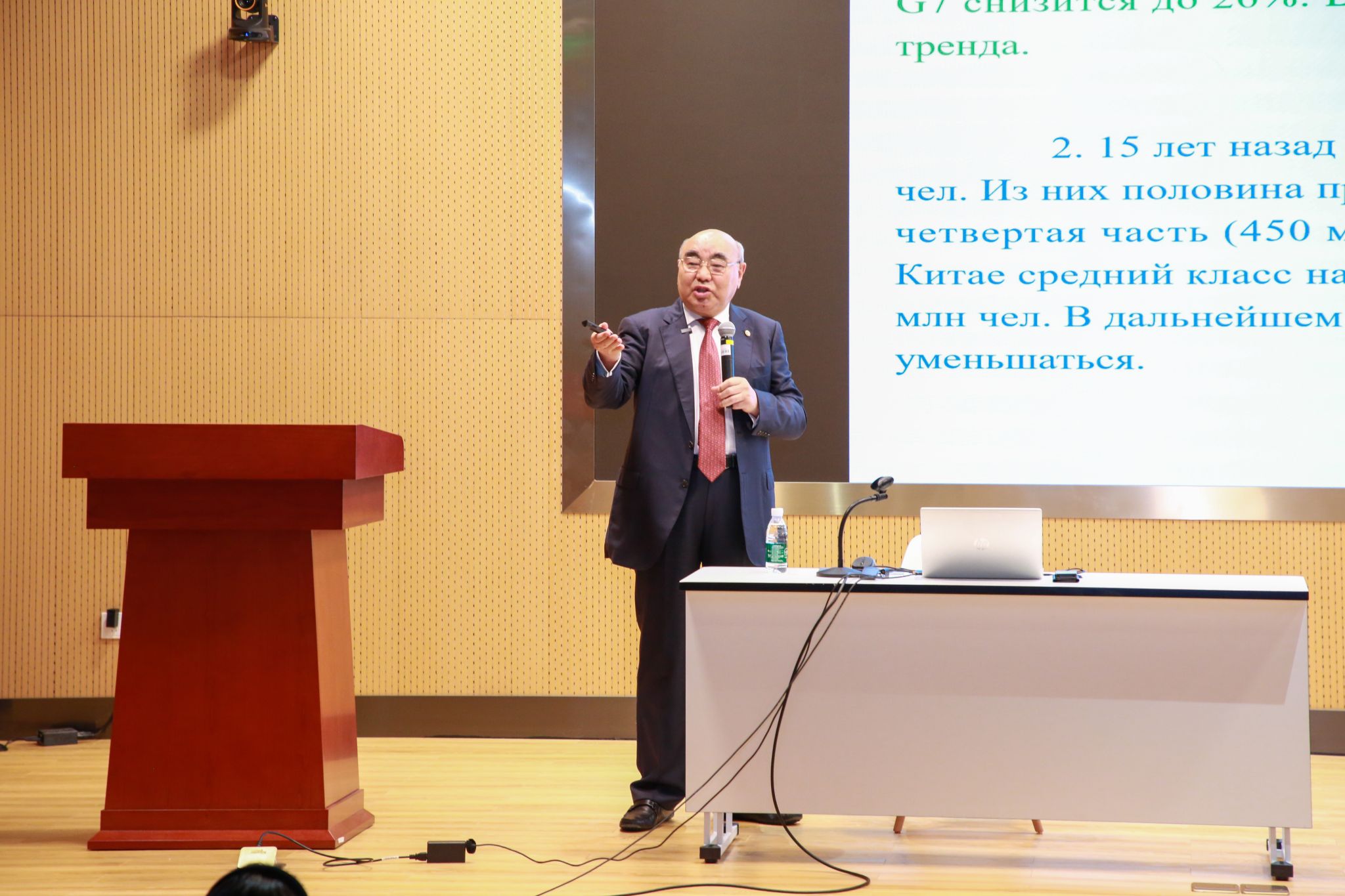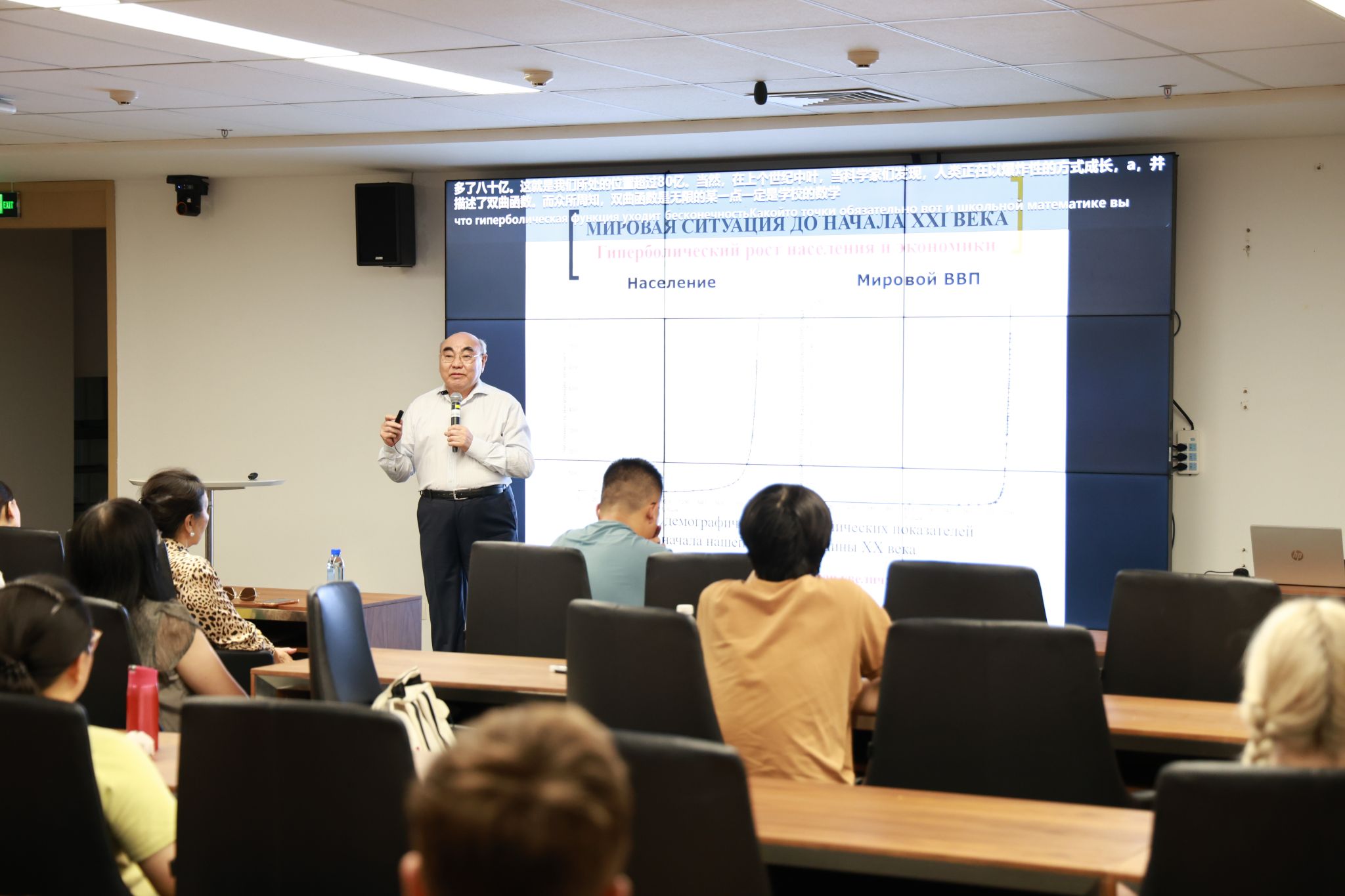 在10月16日舉行的第三場講座中,阿卡耶夫重點討論了“從古至今的人口變遷及21世紀人類前景”。他指出,人口動態是影響國家和全球發展的重要因素,并通過分析全球人口增長趨勢,預測了未來人口增長可能帶來的機遇與挑戰。他特別提到,盡管當前全球人口增長趨緩,但科技進步和創新將繼續推動社會和經濟的發展。