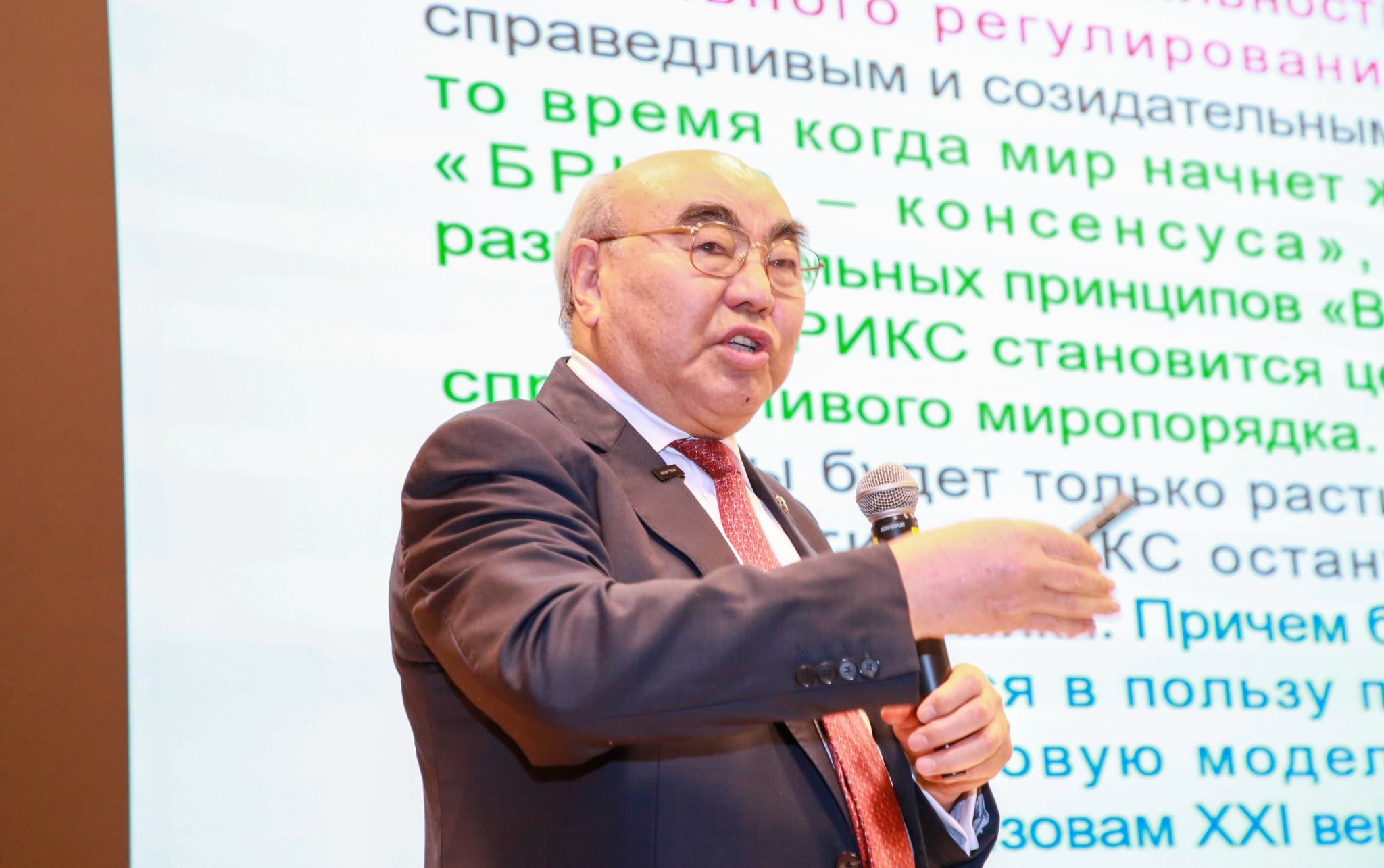 在10月11日的講座中,阿卡耶夫對金磚國家(BRICS+)與七國集團(G7)的發展前景做了詳細的分析和預測。