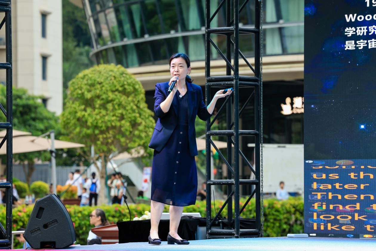 接著,姚蕊講述了深空探索的歷史和FAST的建設歷程,展示了FAST在建造和運行過程中取得的亮眼科技成就。她生動介紹了FAST總工程師南仁東先生帶領團隊執著奉獻、攻堅克難的科學家事跡,深入淺出地帶領公眾學習深空科學知識,理解深空探索事業。
