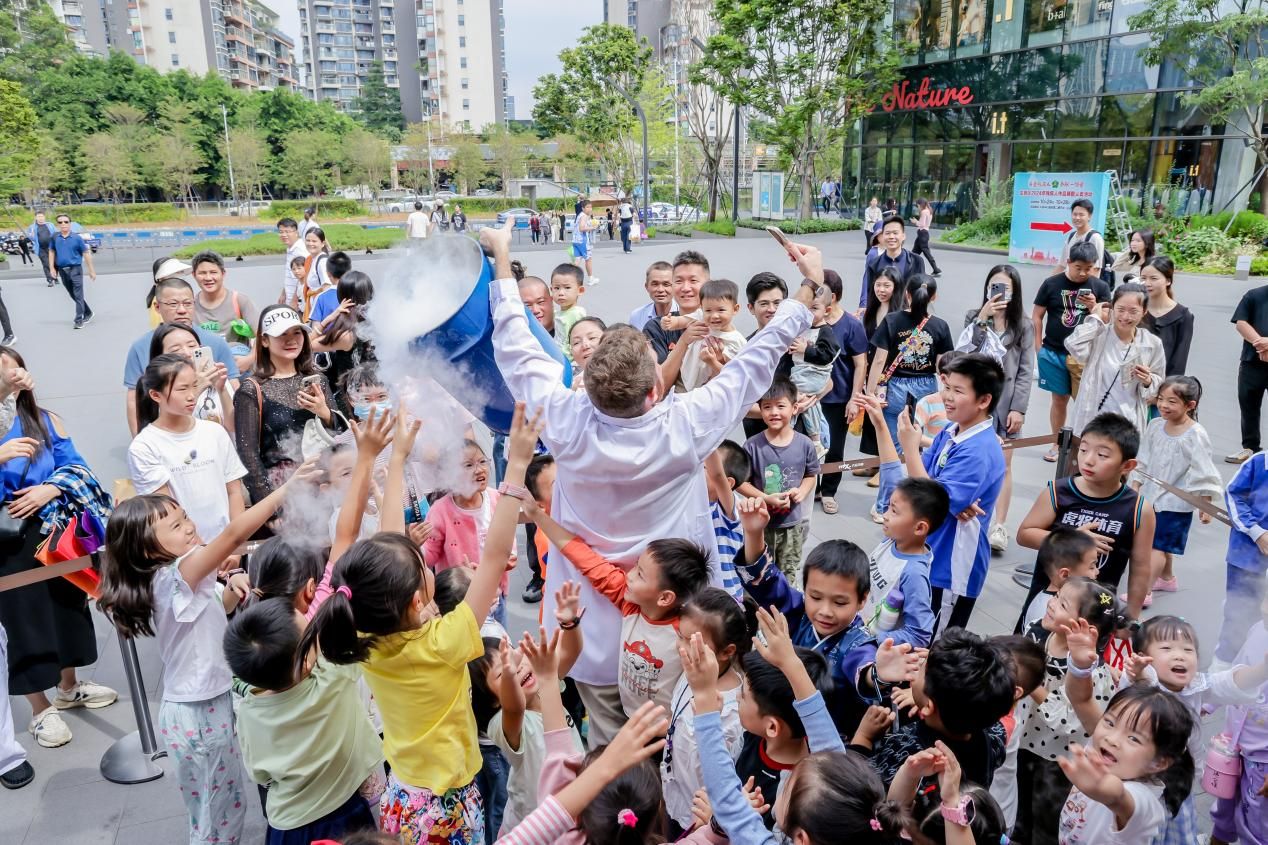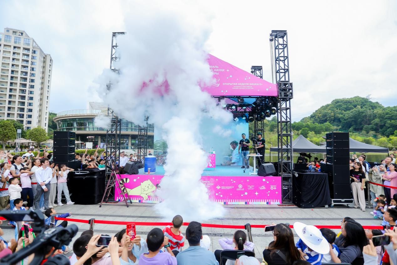 “怎么判斷魚的年齡?“如何從水果中提取DNA?”“為什么非牛頓流體池‘吃軟不吃硬’?”......大師班以實物展示、互動體驗、現場講解等多種方式,將原本深奧難懂的科學知識轉化為通俗易懂的語言和直觀的操作體驗,激發公眾對科學的無限遐想;科學秀現場人頭攢動,“三、二、一!砰!”隨著現場觀眾的倒數,表演導師把熱水快速倒入液氮中后,一團巨大的白色云霧迅速升起,歡笑與驚嘆中,大朋友、小朋友對科學的興趣被悄然點燃;此外,深圳北理莫斯科大學附屬實驗中學也積極參與此次活動,帶來了“走進科學世界,中學科學實驗展演”。